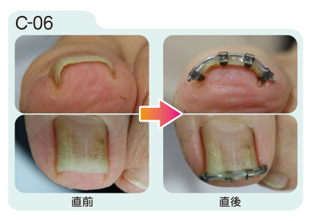 矢印のところに巻き爪で圧迫されていた痕が残っています。