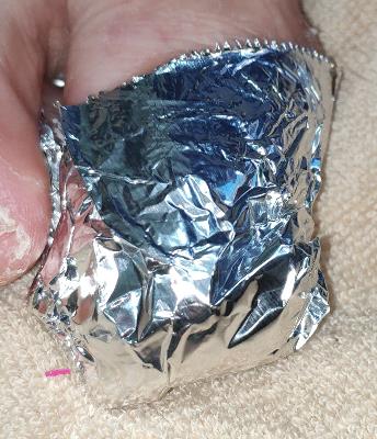 2)脱脂綿や重ねたティッシュペーパーを爪の大きさに切って爪に乗せ市販の除去液をひたす。