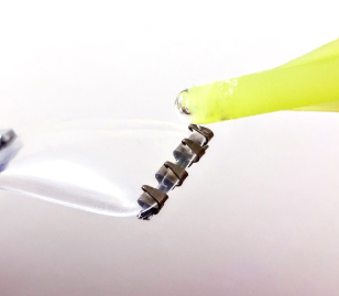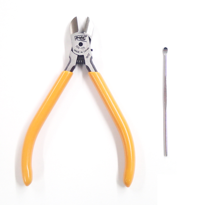 まきづめリフトの形状記憶合金ワイヤーは一般のステンレス線(鋼鉄線)よりもはるかに硬いため、小型で切れ味のよいニッパーはなかなか見あたりません。