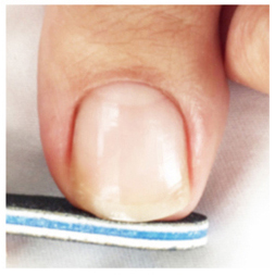 爪が極端に薄い場合、クリップが爪にしっかり固定されないことがあります。その場合は、クリップを覆うように爪先から5mm程度をジェルネイルまたはジェル状の接着剤で固めてください。